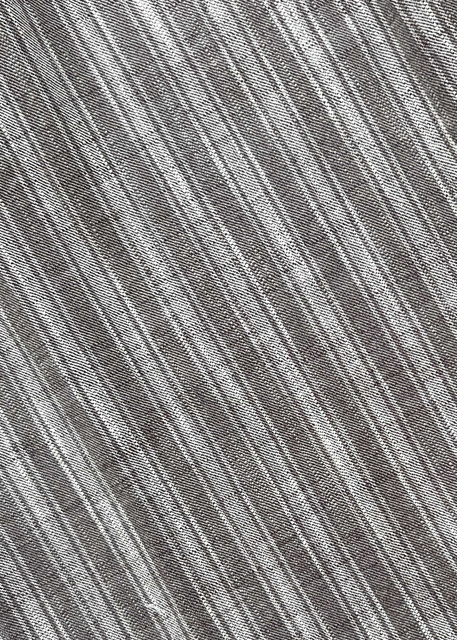 a sleeveless mini dress with a slit neckline and a generous fit. think of our classic float dress without the bottom tier! made in our scribble textile, a midweight woven singlecloth in a warm gray with subtle faded chalky white stripes.