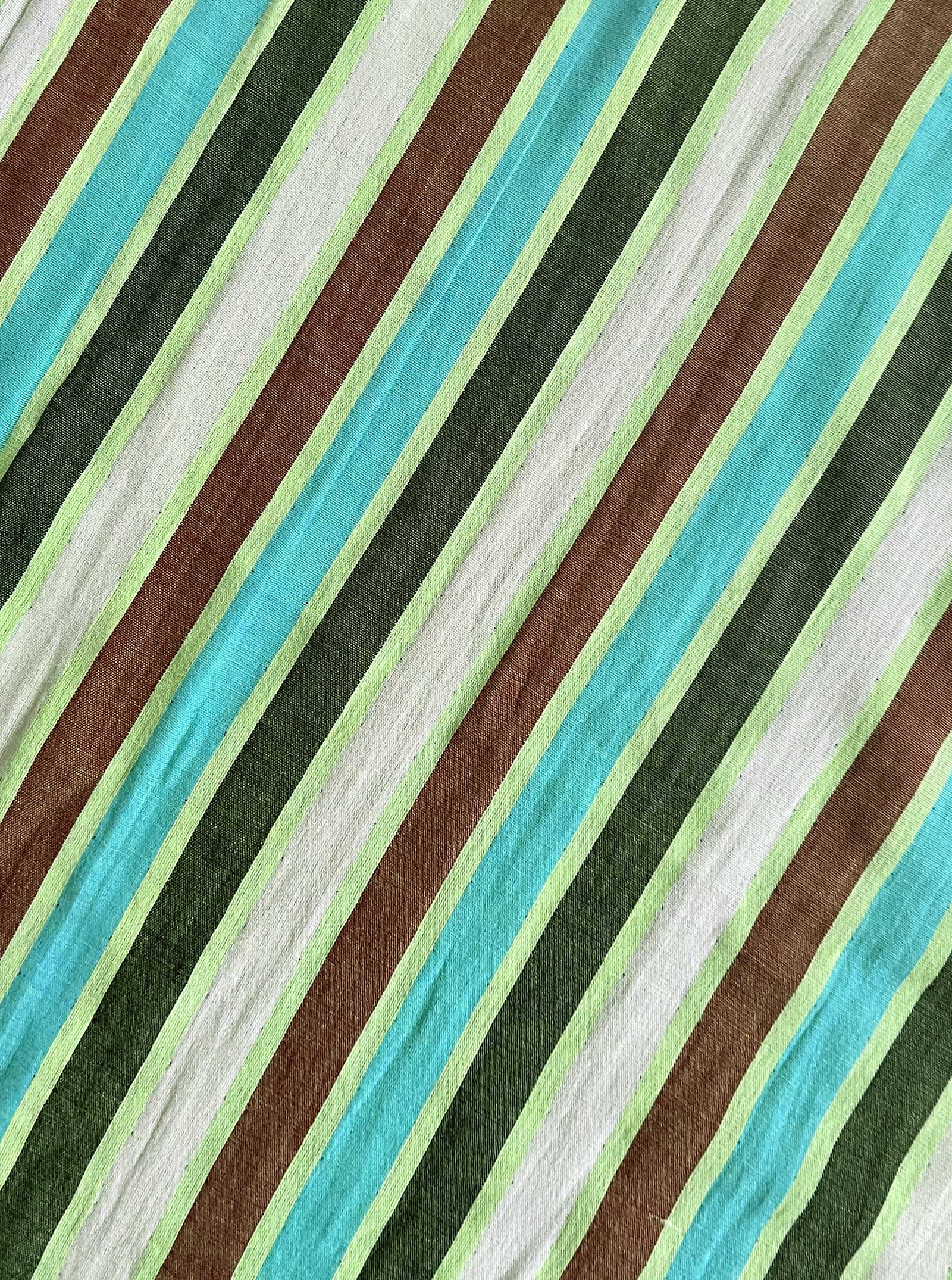 walk - a lightweight supersoft doublegauze featuring woven stripes of neon green, pool blue, brown and rust.